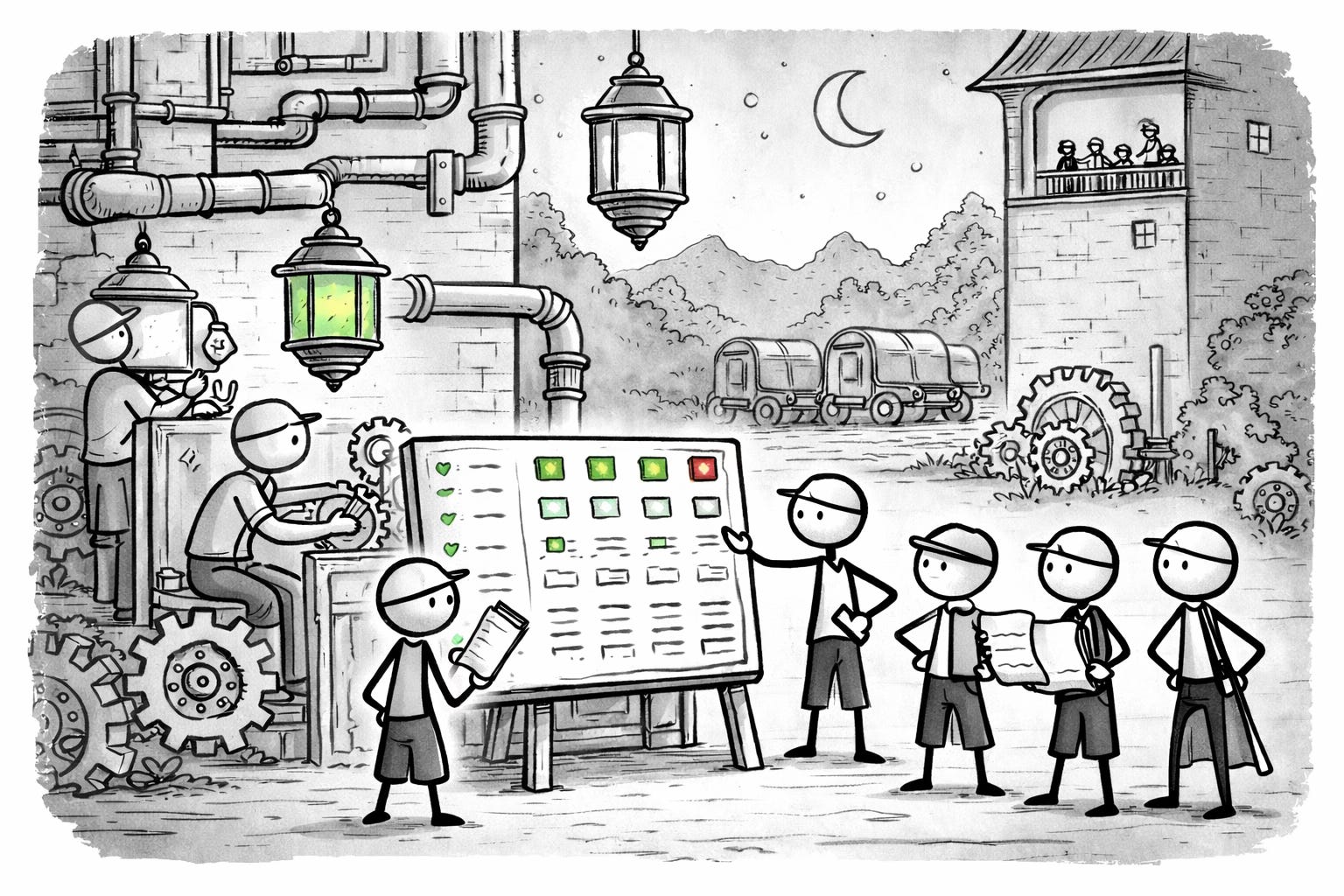By Thursday, the map the Steward had once drawn had evolved into something larger: an Illuminated Board mounted near the mill floor. Tasks moved across its surface in clean, visible lines. Each cog, latch, and guardrail accounted for. Iteration One: nearly complete.